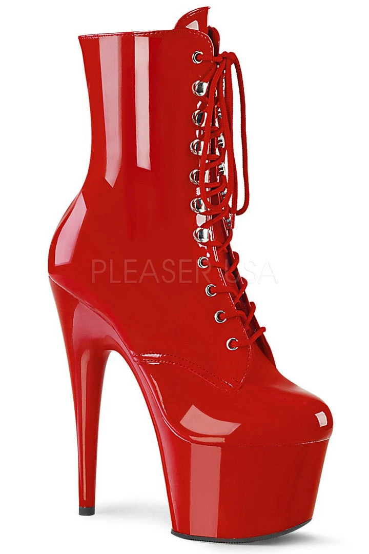 - Patent redΒ Platform Lace-Up Front Ankle Boot, Inside Zip Closure