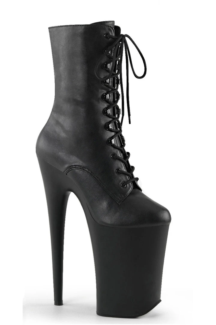 - Matteย Black Platform Lace-Up Front Ankle Boot, Inside Zip Closure