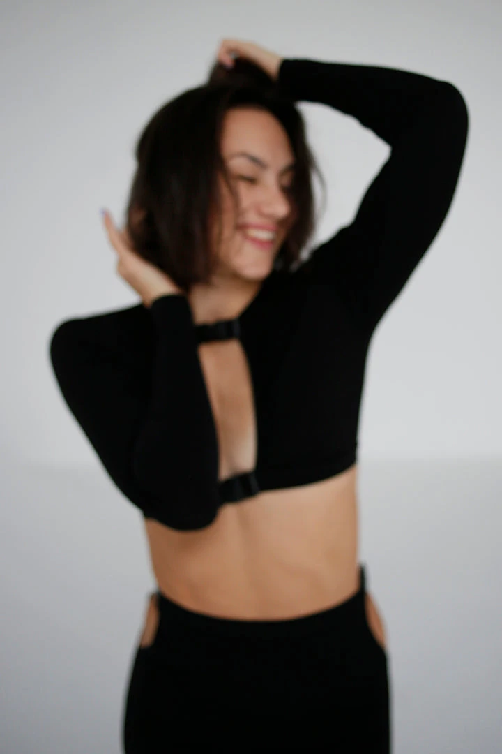 Exo Wear’sΒ Long Sleeve Buckle FrontΒ Top incorporates a long sleeve design with front cut out and buckles for added hot details.