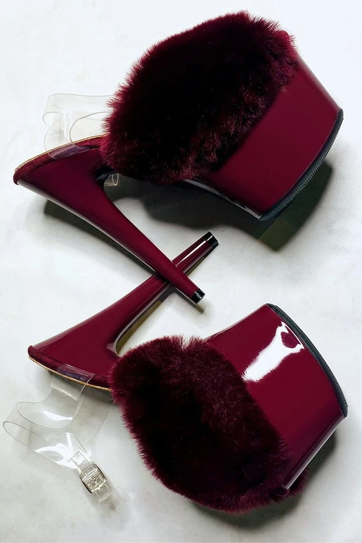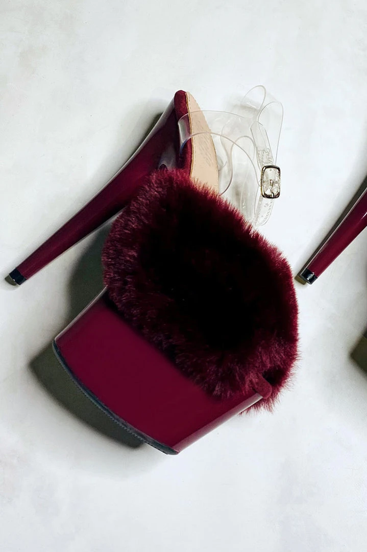 SleekΒ Merlot RedΒ platform and the softest faux fur, weβve levelled up your casual slides!