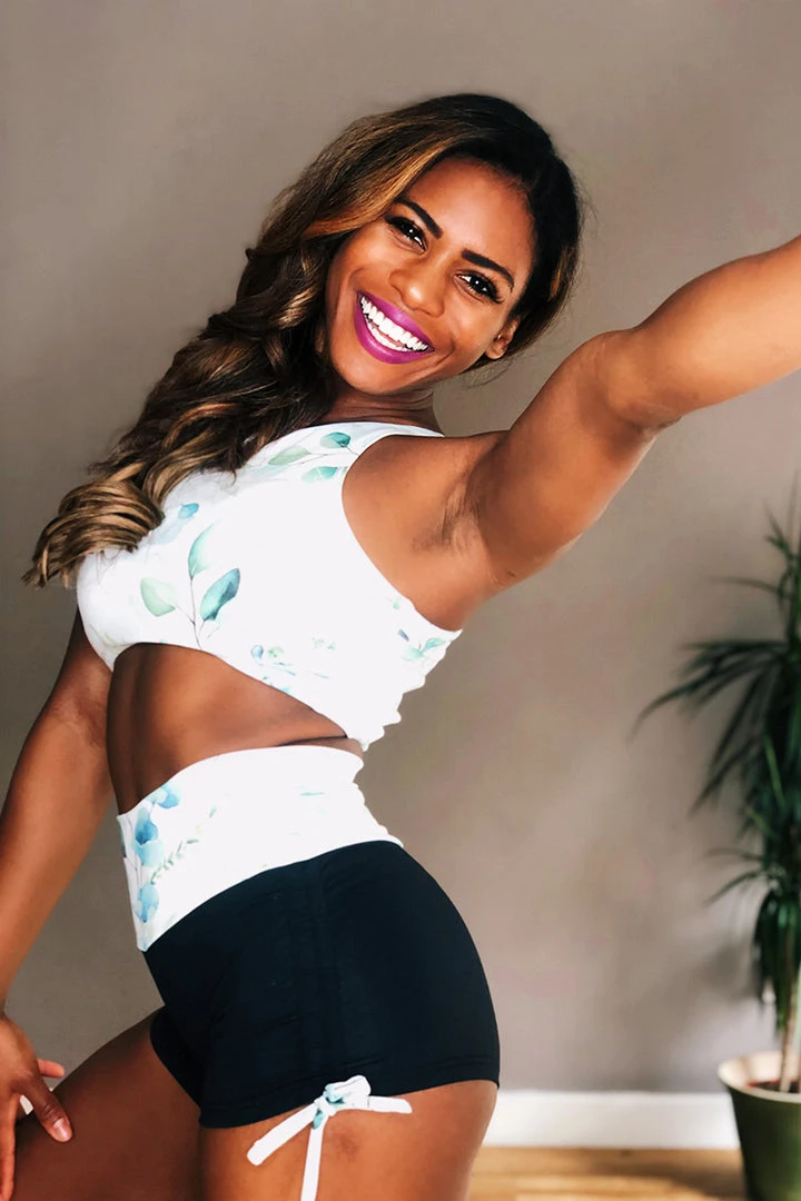 These Drawstring shorts feature a wide printed high rise waistband designed for ultimate comfort and to not dig into your sides. The shorts haveΒ drawstring cords on both sides to adjust the cheeky factor!