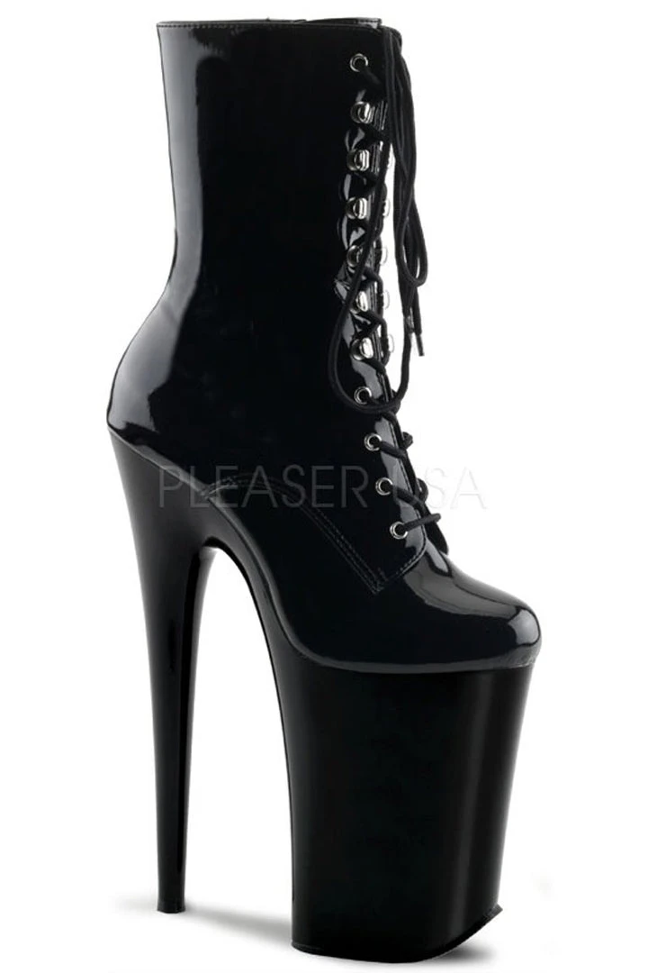 - Patentย Black Platform Lace-Up Front Ankle Boot, Inside Zip Closure
